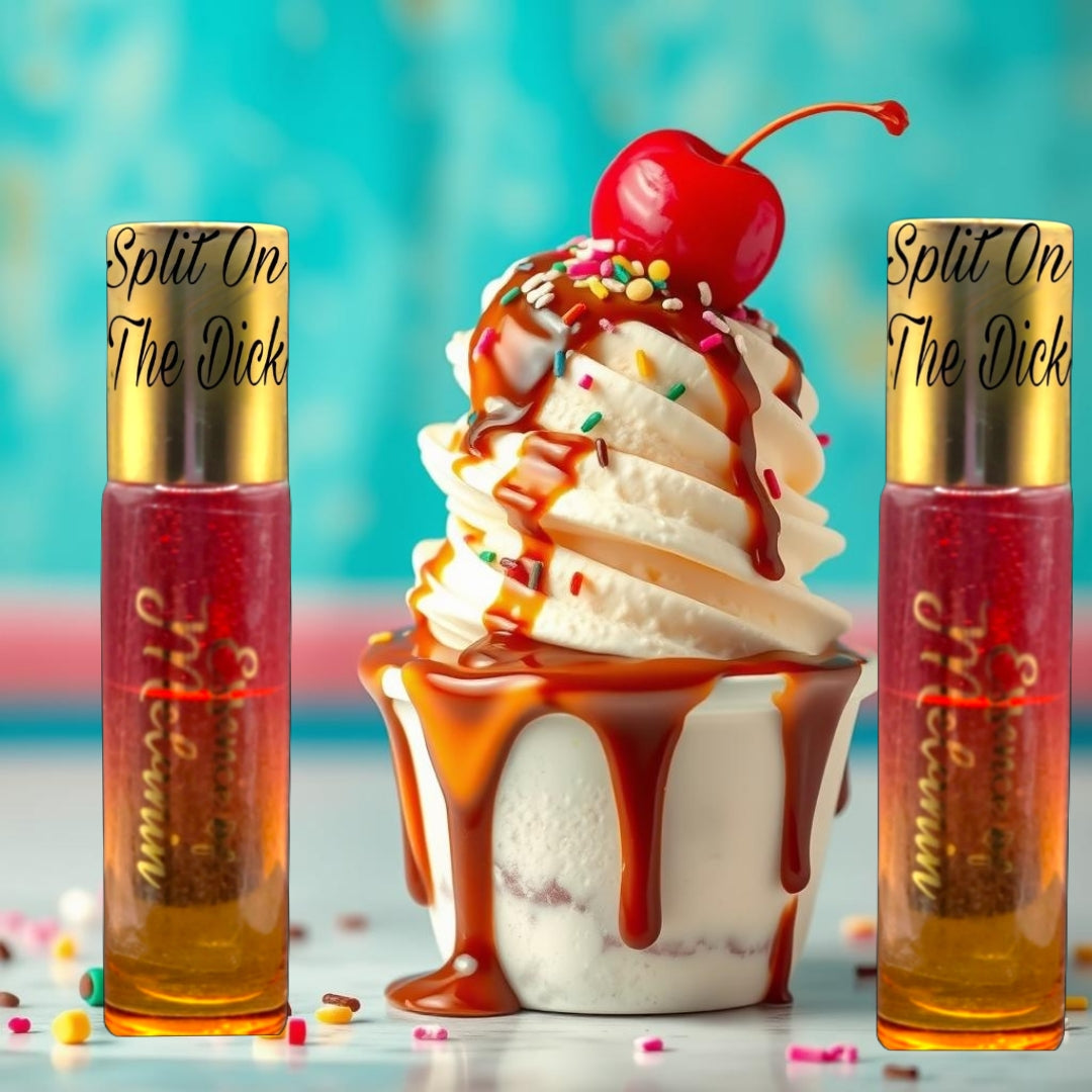 This is not your average body oil! This is a full-blown dessert orgy. Imagine straddling a warm banana split, naked under the neon lights, dripping in thick whipped cream and sticky chocolate. Overripe banana begging to be bitten, hot vanilla cream melting into warm skin, cherry on top just aching to be popped, and thick caramel oozing.