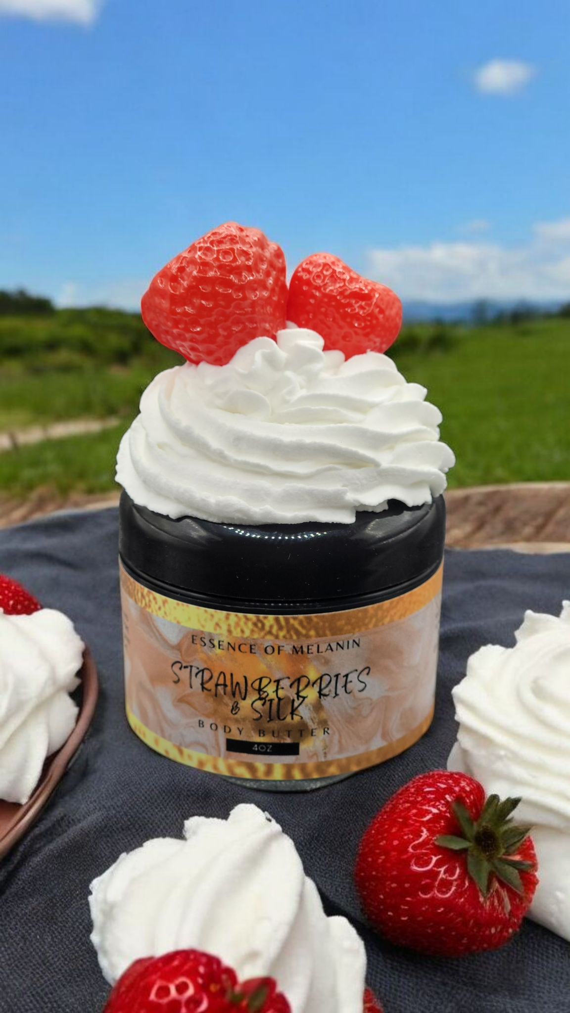 Silk and Strawberries is a slow, sensual tease for your skin. Imagine the taste of ripe strawberries, sliced open and dripping in thick, sweet cream. Soft, juicy, and begging to be licked clean. This whipped body butter glides on like a lover’s touch, leaving you silky smooth and deliciously irresistible. One whiff, and they'll want to taste you. One touch, and they won’t be able to stop. You’re not just wearing it. You’re becoming the fantasy.